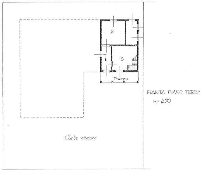 Ingresso da piccolo portico, cucina abitabile con lavanderia-dispensa e soggiorno con scala a vista;