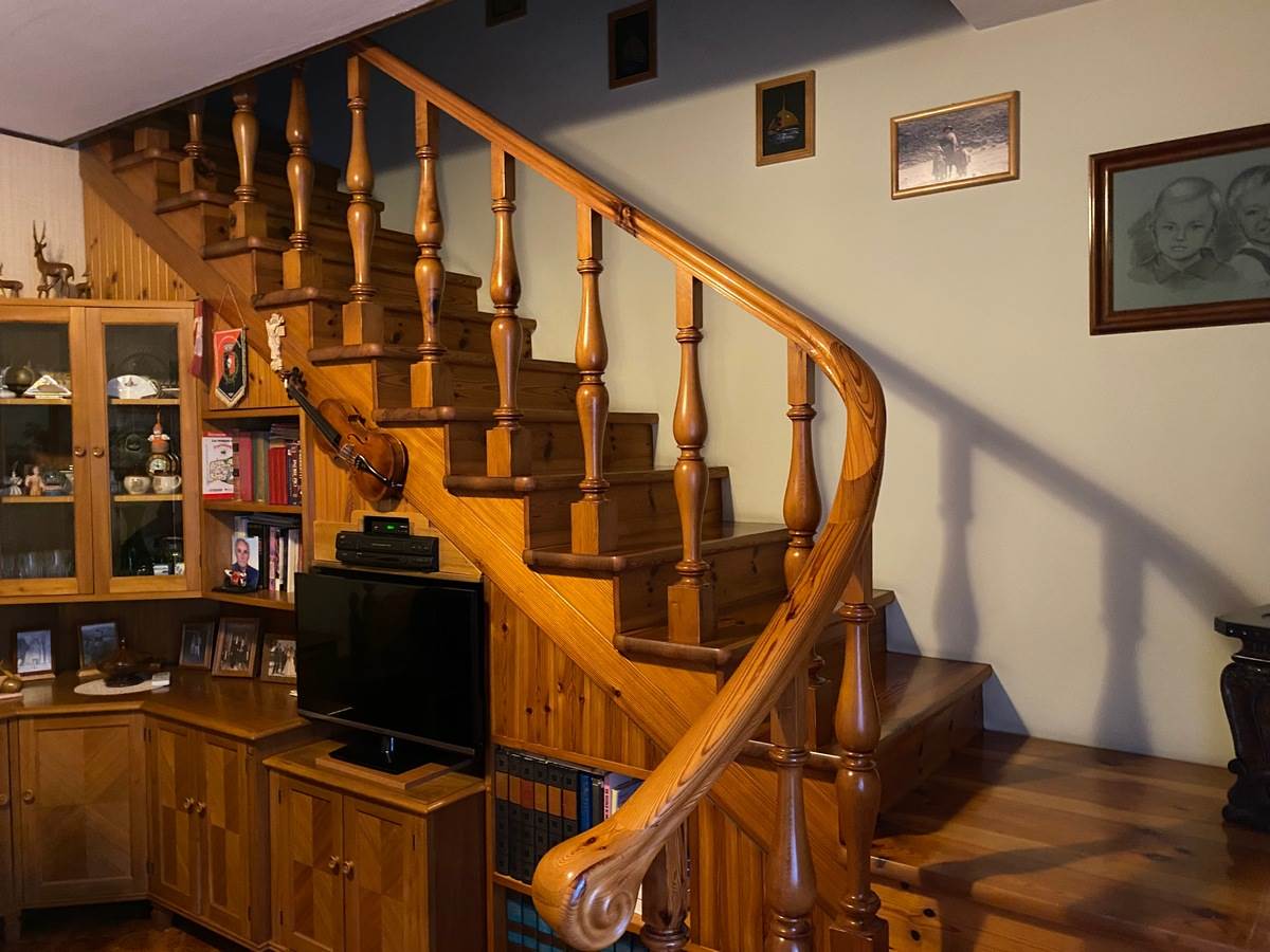 A fianco al laboratorio casetta singola disposta su 2 livelli con zona giorno al piano terra suddivisa in ingresso, soggiorno, cucina e lavanderia; al piano primo due camere matrimoniali, bagno e poggiolo.