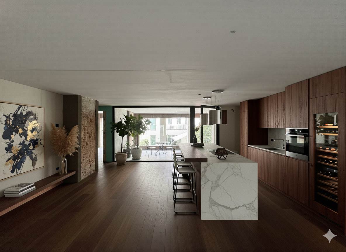 Il Loft è un grande appartamento di 215 mq. a diverse altezze, con circa 50 mq. di terrazze e affini, oltre al garage per 2 auto affiancate.